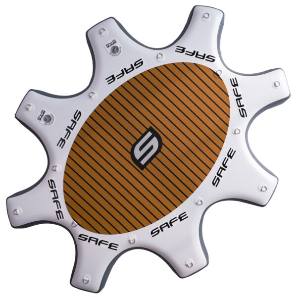 Questa piattaforma consente di agganciare 8 sup, tramite gli occhielli di connessione posizionati lungo tutto il bordo offrendo un ancoraggio sicuro.