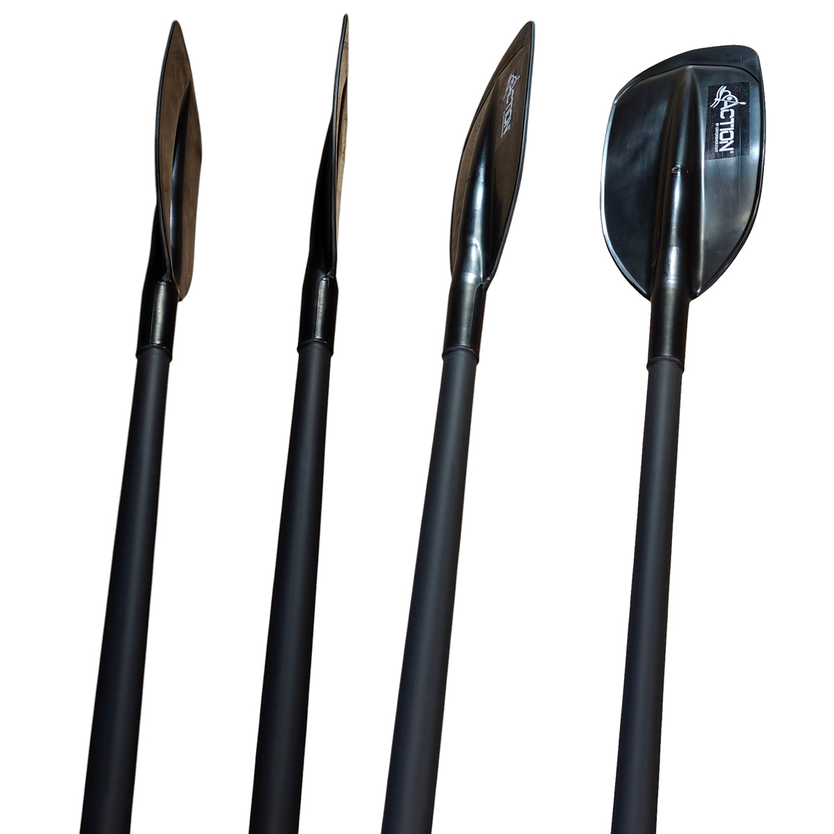Action River è realizzata con pale in polipropilene resistente agli urti e manico alluminio completamente rivestito con guaina in PVC.