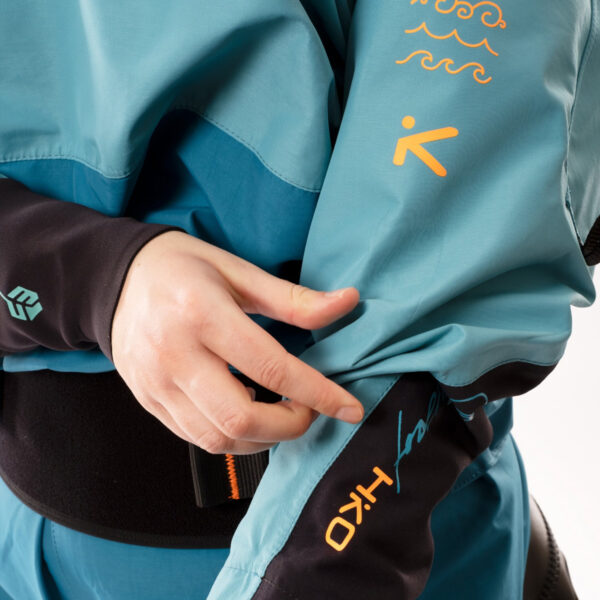 Doppio Tubo in Vita: Il sistema a doppia chiusura permette di sigillare perfettamente la muta con il paraspruzzi (spraydeck), impedendo all’acqua di entrare nel pozzetto del kayak.