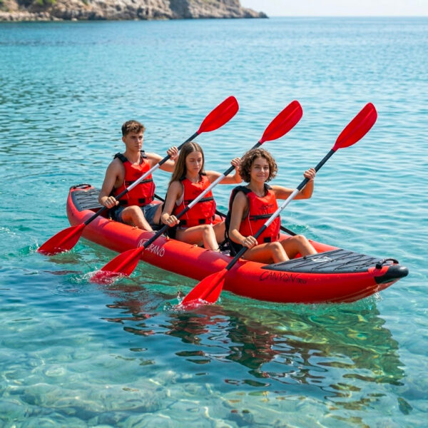 Canyon Trio è il kayak tuttofare per famiglia di Verano Watersports, divertente, sicuro e dalle ottime prestazioni, vi accompagnerà nelle vostre escursioni in fiumi, mare e laghi.