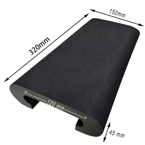 - Misure: lunghezza 320mm, larghezza 150mm, spessore EVA 15mm, larghezza apertura incastro 120mm, spessore totale 45mm.