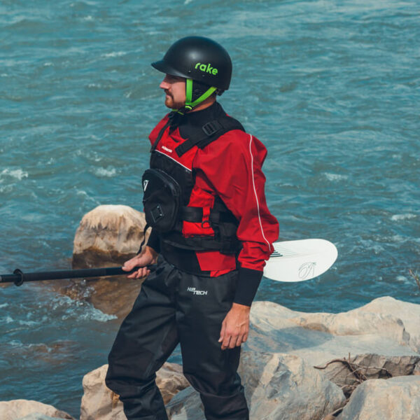 Pantaloni semistagni in tessuto trilaminato traspirante ad alte prestazioni, con rinforzi su ginocchia e natiche. Consente di pagaiare in comodità anche nelle situazioni più estreme.
