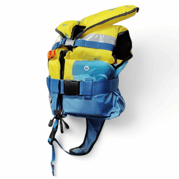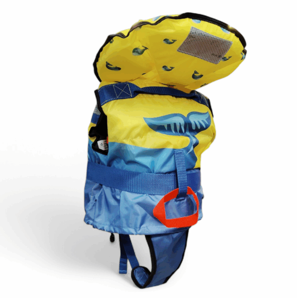 La maniglia cucita sul retro del giubbotto facilita l’estrazione del bambino dall’acqua.