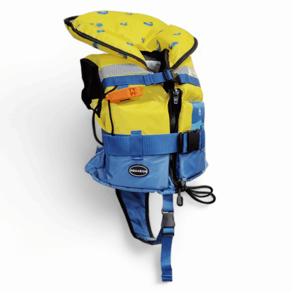 Junior è un aiuto al galleggiamento per bambini. L’ampio collo aumenta la stabilità del bambino in acqua e il suo senso di sicurezza, mantenendolo in posizione verticale. Il colore brillante, il fischietto e le bande riflettenti sono caratteristiche essenziali che garantiscono visibilità e sicurezza. Chiusura frontale: due cinghie con fibbie, lampo centrale, laccetto in vita. Una comoda cinghia inguinale garantisce il mantenimento del gilet nella giusta posizione.