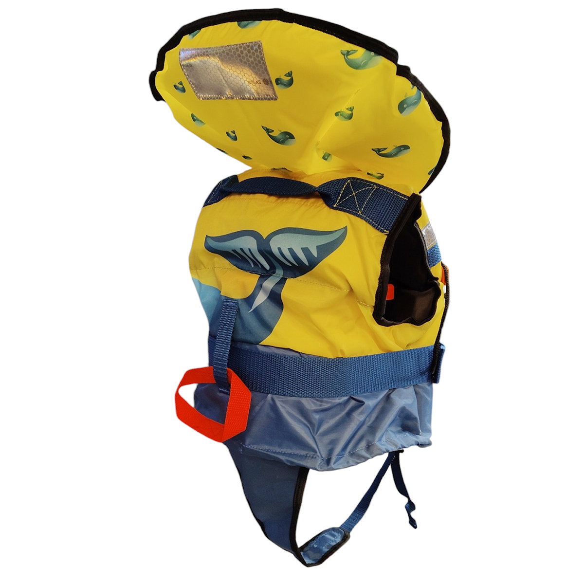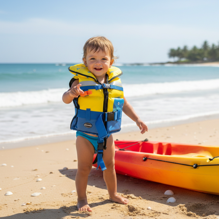 La maniglia cucita sul retro del giubbotto facilita l’estrazione del bambino dall’acqua.
