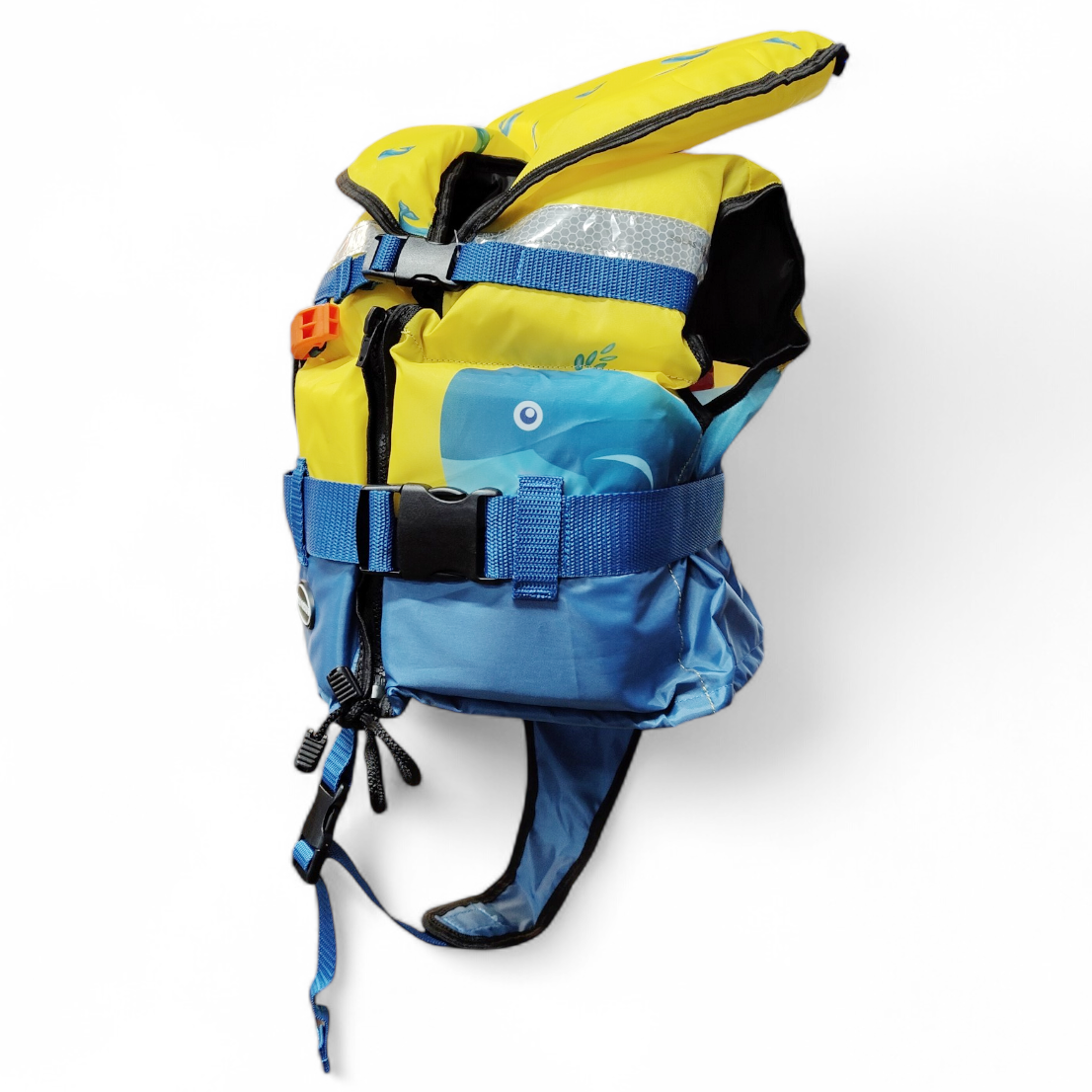 Junior è un aiuto al galleggiamento per bambini. L’ampio collo aumenta la stabilità del bambino in acqua e il suo senso di sicurezza, mantenendolo in posizione verticale. Il colore brillante, il fischietto e le bande riflettenti sono caratteristiche essenziali che garantiscono visibilità e sicurezza. Chiusura frontale: due cinghie con fibbie, lampo centrale, laccetto in vita. Una comoda cinghia inguinale garantisce il mantenimento del gilet nella giusta posizione.