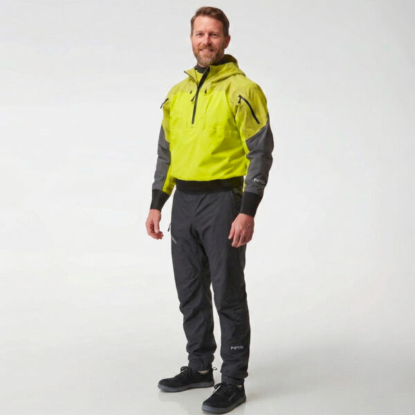La giacca Riptide NRS offre una protezione impermeabile e traspirante avanzata. Presenta un cappuccio articolato e collo con mezza zip per una rapida adattabilità, doppio tubo in vita e guarnizioni per i polsi in neoprene per un comfort che dura tutto il giorno.