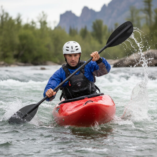 Utilizzo tipico: come giacca “splash” da canoa, kayak, rafting, packrafting, quando serve protezione ma non necessariamente un sistema completamente “dry” (cioè impermeabile dal casco agli stivali). Il taglio ampio la rende adatta a stratificare sotto – ad esempio un pile o una muta da acqua fredda.