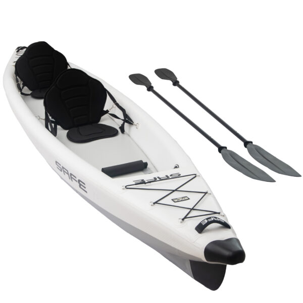 Safe Kayak HP 2 è un kayak ad alta pressione per due persone completamente in drop-stitch, veloce, rigido e facile da gonfiare. È il perfetto compromesso tra una gonfiabile e una barca rigida.