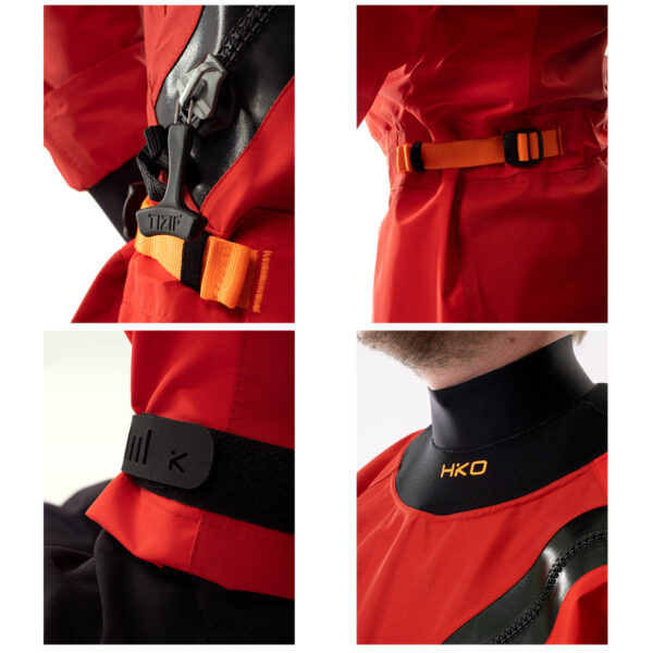 Valchiria CC4.N. Al momento abbiamo terminato lo sviluppo delle guarnizioni completamente in neoprene ma asciutte – con una pelle liscia e una finitura in pelle scorrevole abbiamo costruito una muta semi-stagna priva di lattice. L’idea era quella di creare una muta semi stagna estremamente resistente, molto comoda da indossare anche per chi non è abituato a indossare mute stagne. Questo è ciò che significa la “N”. Nessun lattice sui polsi.
